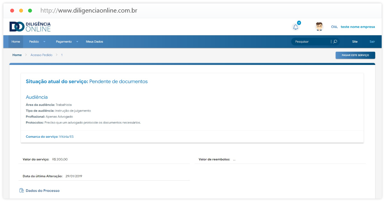 Depois que solicitar você pode buscar seu pedido na sua área restrita para acompanhar o andamento...