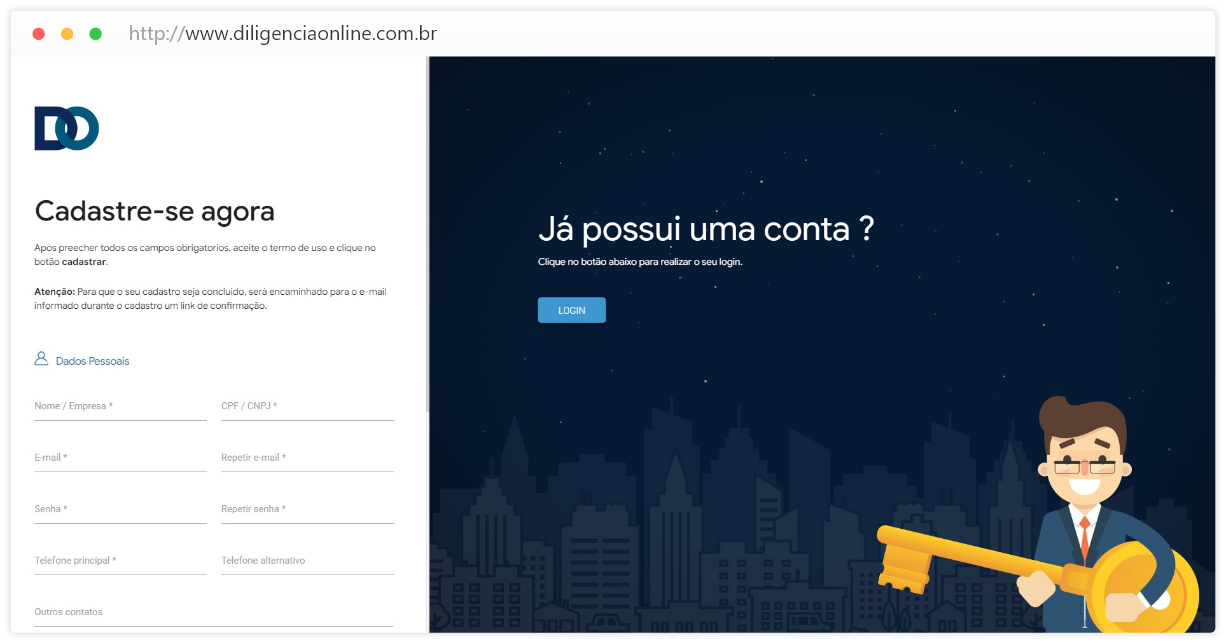 Preencha seus dados para gerar um novo cadastro como cliente em nossa plataforma. Não se esqueça de confirmar sua conta no e-mail cadastrado.
